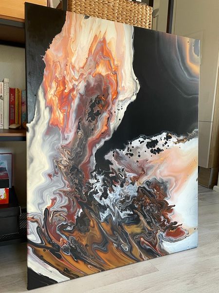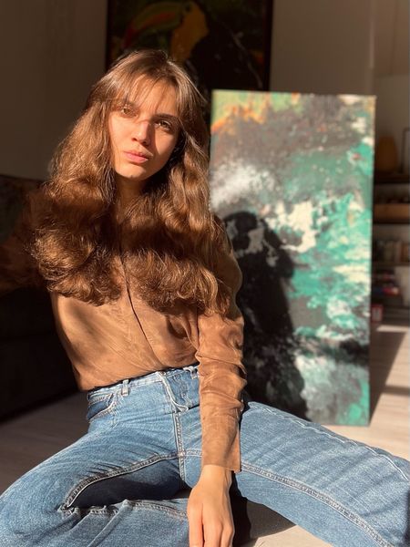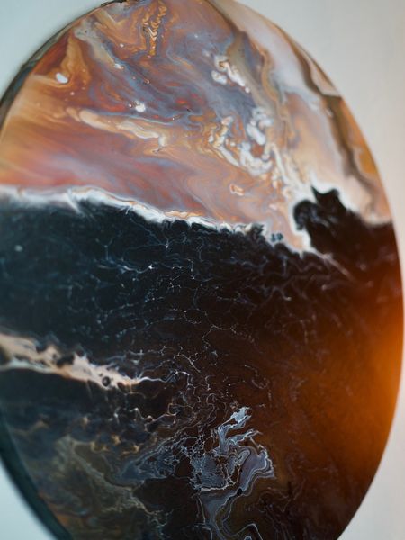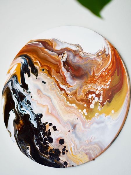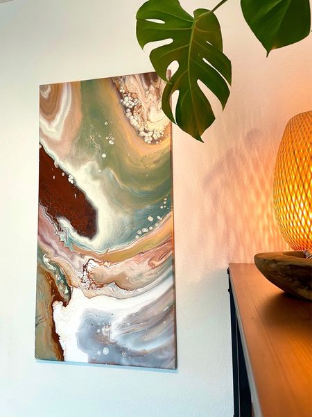 „Hello, my name is Selina, I’m 24 years old and I live in my hometown Karlsruhe. I’m a graphic designer at day and an fluid artist at night. My passions are sustainability, photography, painting and drawing, good food, funky music and deeper human connection. The universe and everything about it is a big fascination for me. As is art – that has been a passion since I was little. ..This whole fluid journey really started last year when corona got „bigger“. I really needed to do something that made me feel safe and grounded during these crazy times and playing with paint and all its variations was almost too perfect at that time. I started to experiment with different techniques, materials I poured on and over, mixtures, colors and brands. My intention wasn’t even to make galaxy art specifically, but for some reason it turned out that way ; which I am now – so happy about. I want to create beautiful art, that makes people’s eyes go „oh wOw“, unique pieces you can escape in for a while and most importantly to fill homes all over the world with goood energy.“